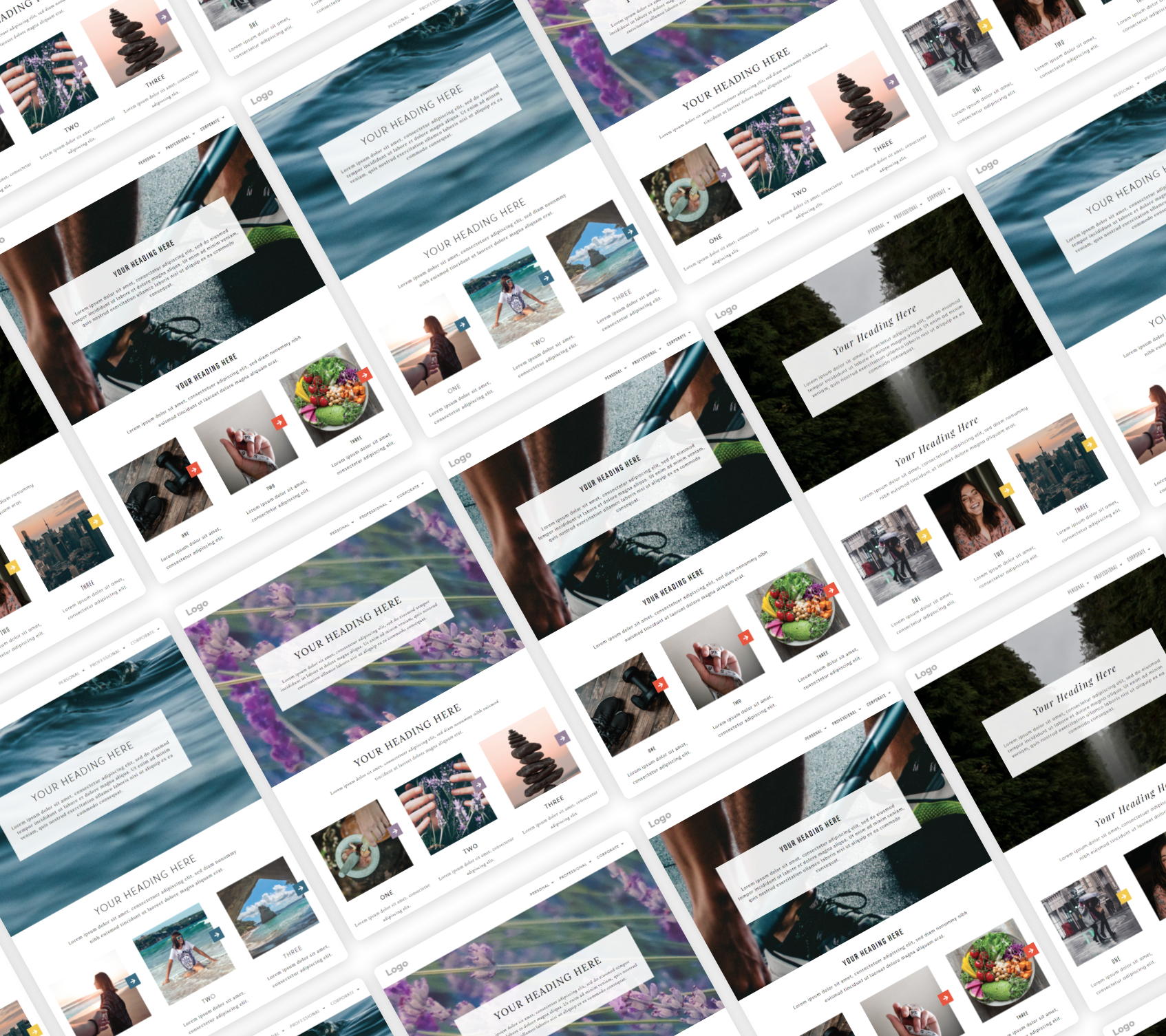 The templates are configured to obey "My Brand" — a product I built in 2019 which uses a separate CSS library to automatically adjust website content to match a user's selected styles.